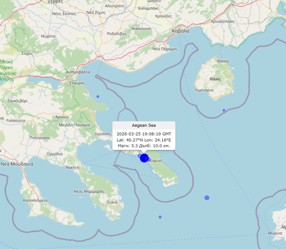 По данни на НИГГГ–БАН трусът е бил с магнитуд 5,3 по скалата на Рихтер и е регистрирано в Егейско море, на първия ръкав на Халкидики, съобщиха от Националния институт по геофизика, геодезия и география (НИГГГ) – БАН.