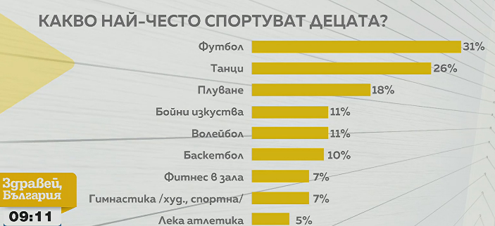 По думите ѝ, макар 70% от децата да спортуват поне веднъж месечно, това е далеч под необходимото за поддържане на добра форма. А липсата на движение вече дава отражение – България се нарежда на трето място в Европа и на пето в света по детско затлъстяване.