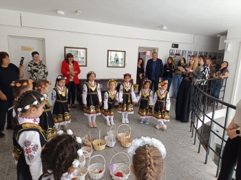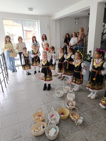 В навечерието на Великденските празници деца от Детска градина “Света Анна“ посетиха община Сапарева баня и поздравиха кмета Калин Гелев.