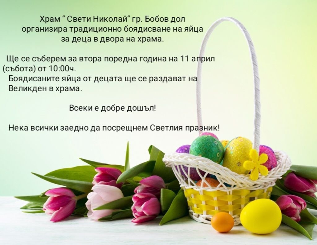 Деца ще боядисват яйца в черквата “Св. Николай Мирликийски“ в Бобов дол на Велика събота (11 април).