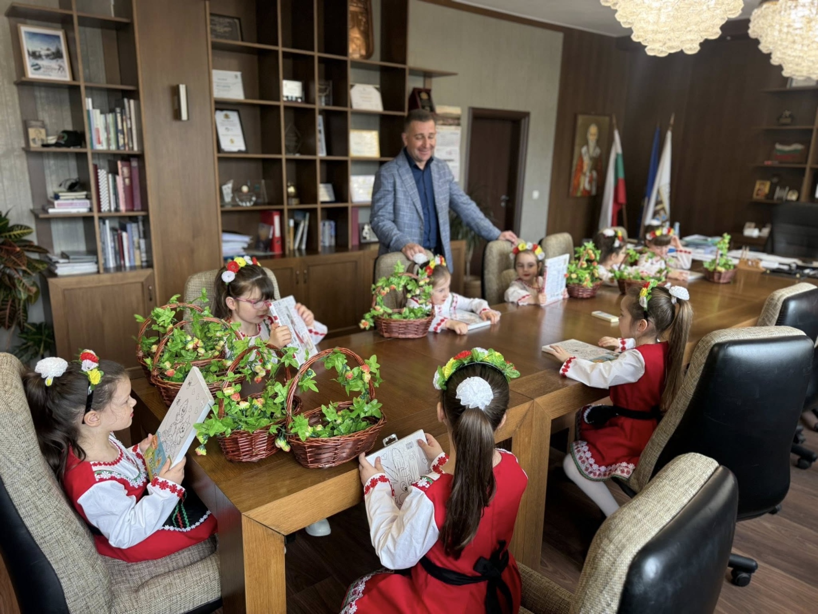 Сградата на Община Самоков се изпълни с детски смях и празнично настроение! Малките лазарки от трета група “Балонче“ към ДГ “Звънче“ посетиха кмета на община Самоков Ангел Джоргов и отправиха сърдечен поздрав по повод предстоящите великденски празници.