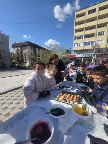На площад “Септември“ в Симитли десетки деца сътвориха истински празник, нашарвайки пъстри и красиви яйчица с много настроение и усмивки.