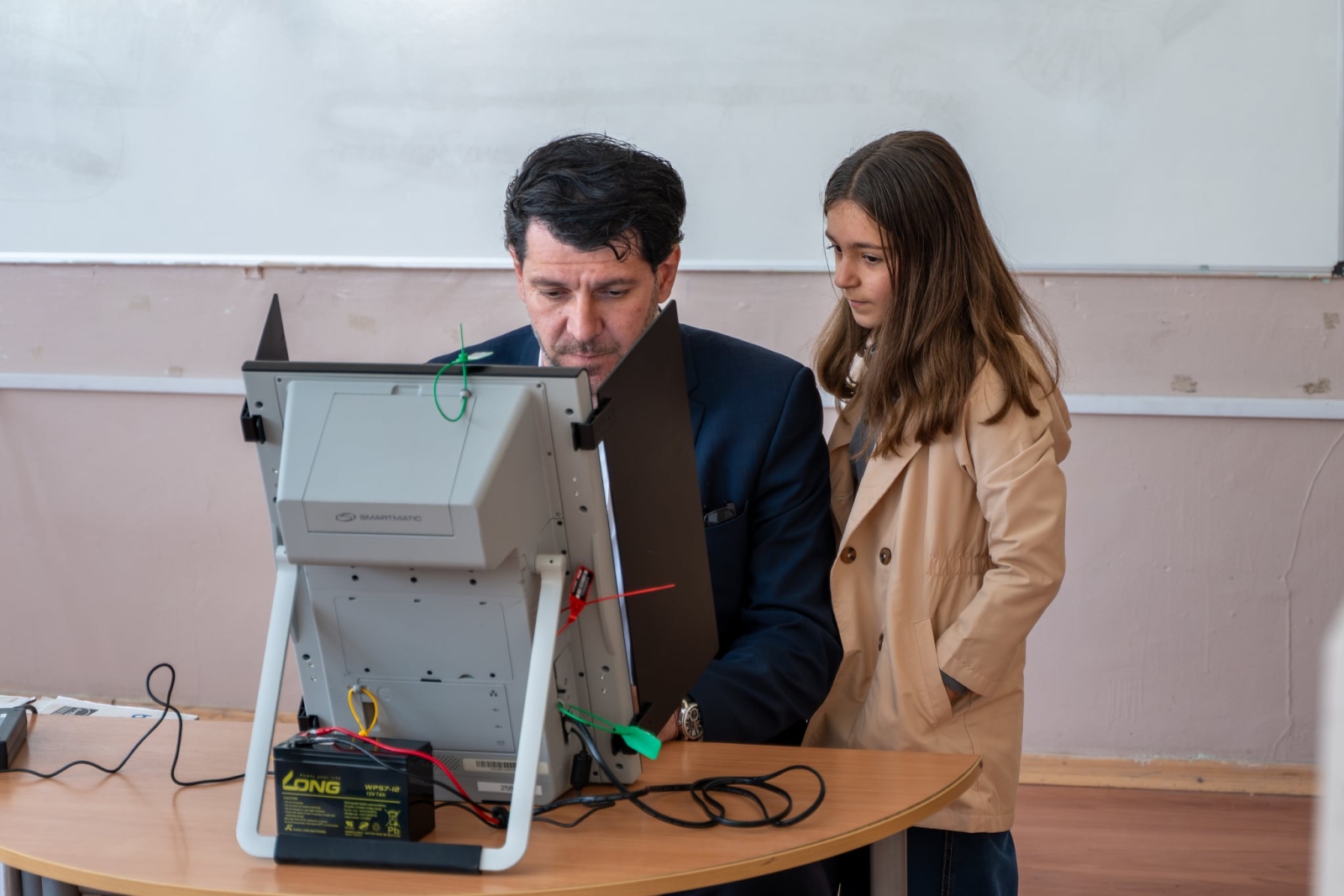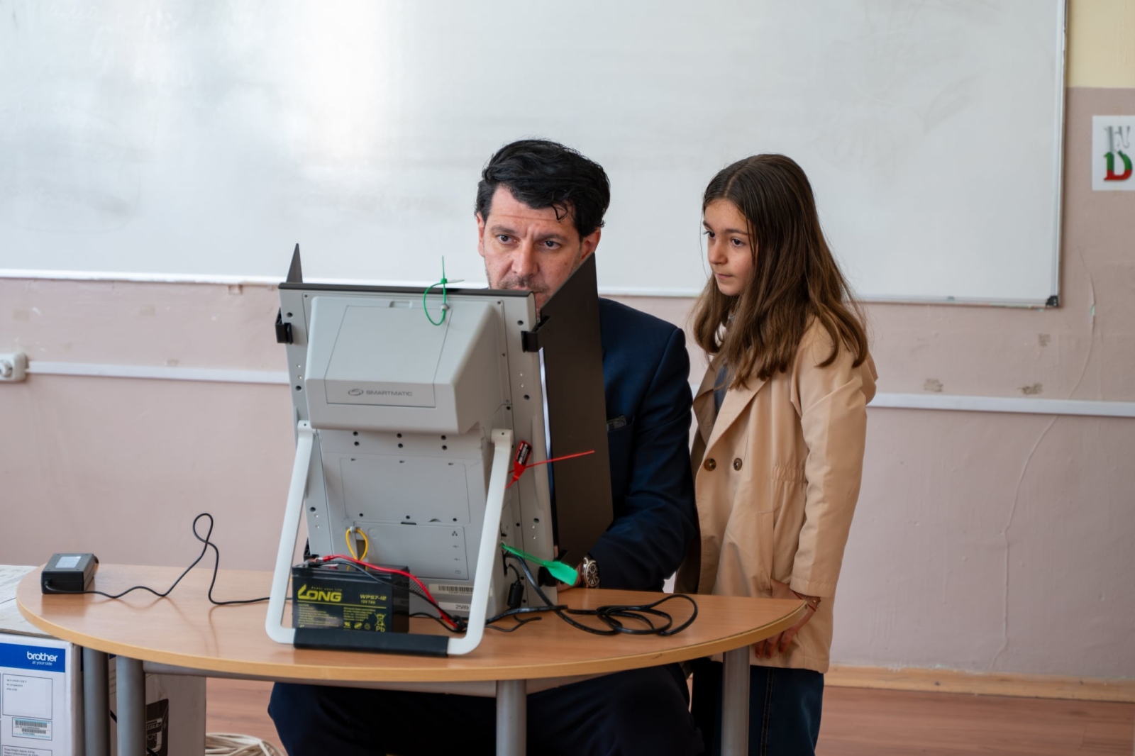 Той упражни правото си на вот в компанията на своята съпруга – преподавателката Татяна Стамболийска, както и на малката им дъщеря. Детето символично постави бюлетината в урната заедно със своя баща.