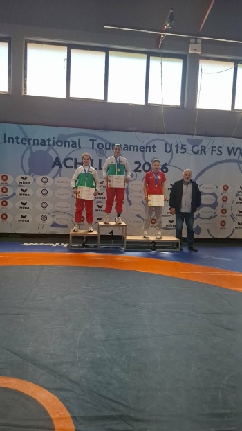 На състезание в гръцкия град Лариса Вероника Стоилова се отличи с отлично представяне и завоюва златен медал в категория до 66 килограма, демонстрирайки увереност и стабилна техника на тепиха.