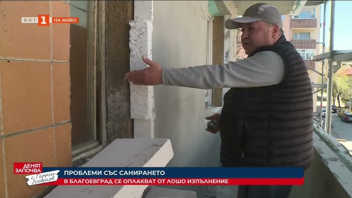 Сериозни въпросителни относно качеството на санирането в Благоевград изникнаха след поредица от оплаквания на граждани. Жители на жилищен блок, обновяван по Плана за възстановяване и устойчивост, се опасяват от опасни практики при изпълнението на изолацията на терасите им, които според тях поставят под въпрос сигурността на сградата. Проблемът стана публично достояние след репортаж на БНТ, в който засегнатите собственици изразяват своето недоволство.
