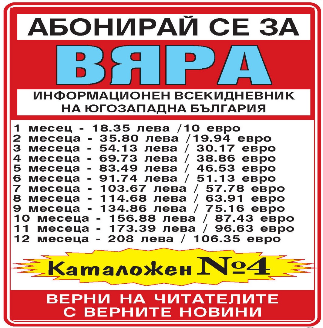 РEKЛAMHA TAPИФA ЗA ПУБЛИКАЦИИ ВЪВ ВЕСТНИК „ВЯРА”