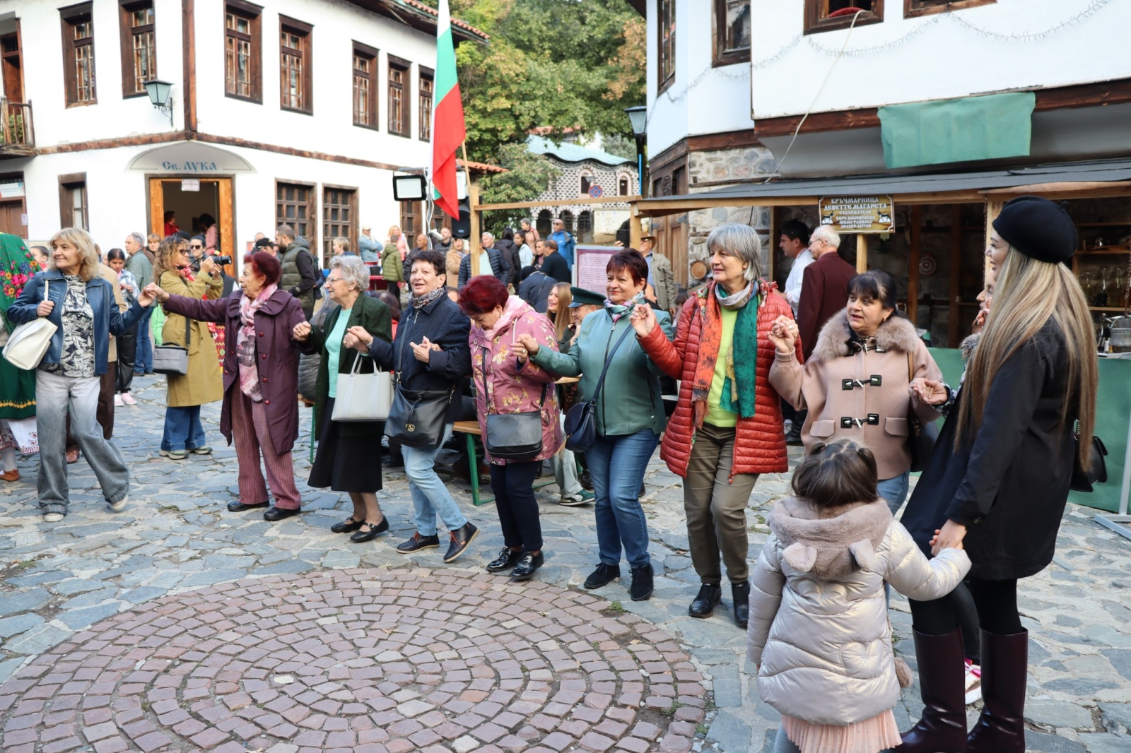 В двора на Мощанската къща звучаха мелодиите на Вокален ансамбъл “Езерец“ и Китаро-мандолинния оркестър, а на мегдана, пред къща “Свети Лука“, танцов ансамбъл “Вихрен“ поведе хорото, събирайки гости и участници в общ ритъм и настроение.