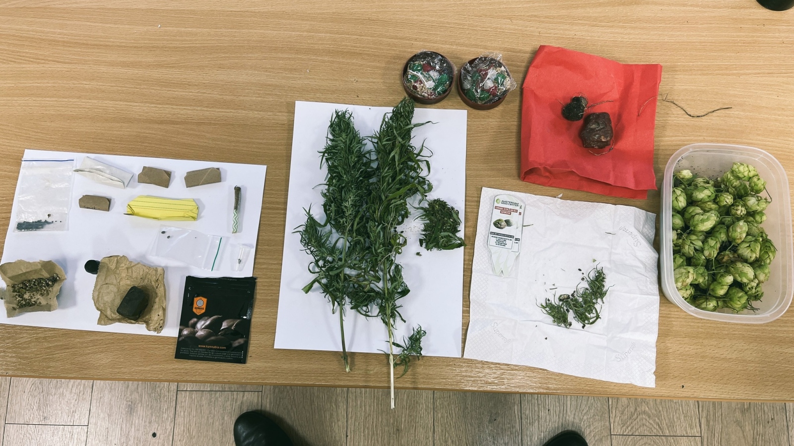 Първо е задържана 41-годишна жена, у която са открити 18 грама канабис и допълнителен съмнителен растителен материал. Малко по-късно същата нощ е спрян 39-годишен мъж, у когото са намерени различни семена, буркан с 13 грама кафяво, твърдо вещество, контейнер с 0,5 грама кокаин и прясна растителна маса – предполагаем канабис.