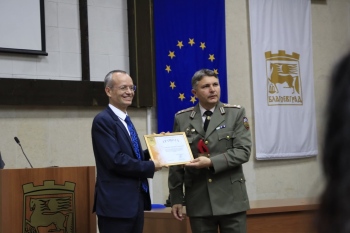 С почетна грамота и плакет беше удостоен и полковник Кирил Спаневиков – командир на Трето бригадно командване, заради ключовата роля на военнослужещите в продължилата месеци наред борба с пожарите в област Благоевград.