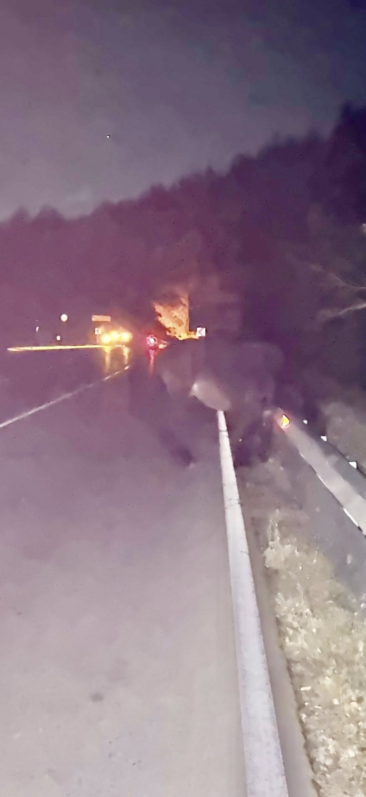 “Спрях, обадих се на 112 и започнах да подавам сигнали с фенерче, за да предупреждавам идващите от Симитли към Разлог за опасността. В тъмното, макар и с жилетка, бях в огромен риск, защото хората рядко се съобразяват и преценяват правилно ситуацията. Честно казано не зная как не ме блъснаха“, пише Русинова.