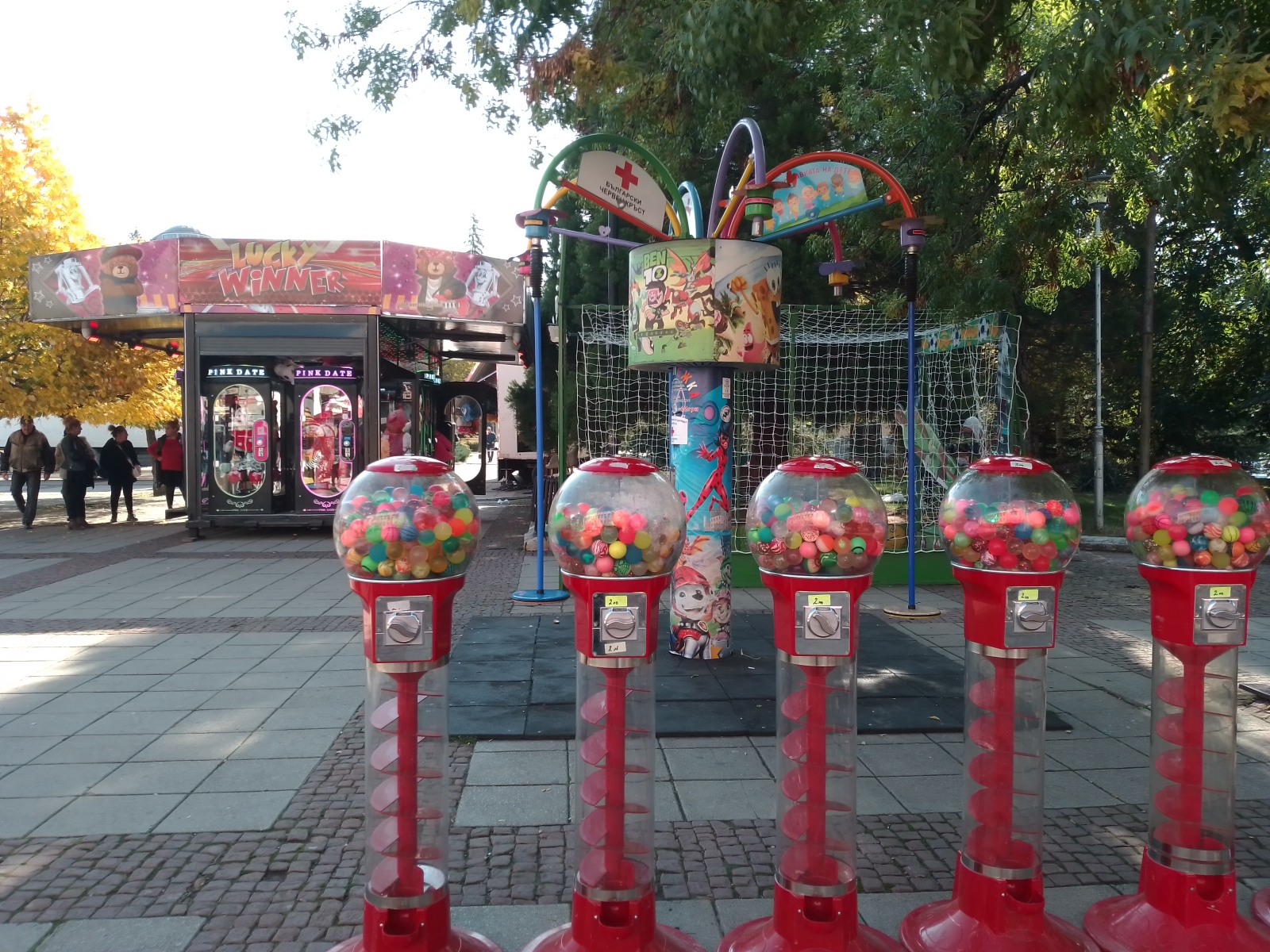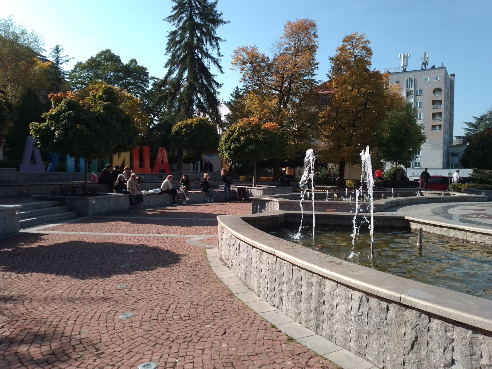 Пенсионери бяха избрали пейките около фонтаните, за да се порадват на топлото време и да си поговорят. Работници монтираха сцената, на която от петък стартира празничната програма. Най-нетърпеливите търговци вече бяха отворили врати на новопоставени павилиони, предлагащи храна (понички, бургери), играчки. Други монтираха първите грилове.