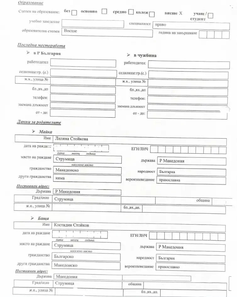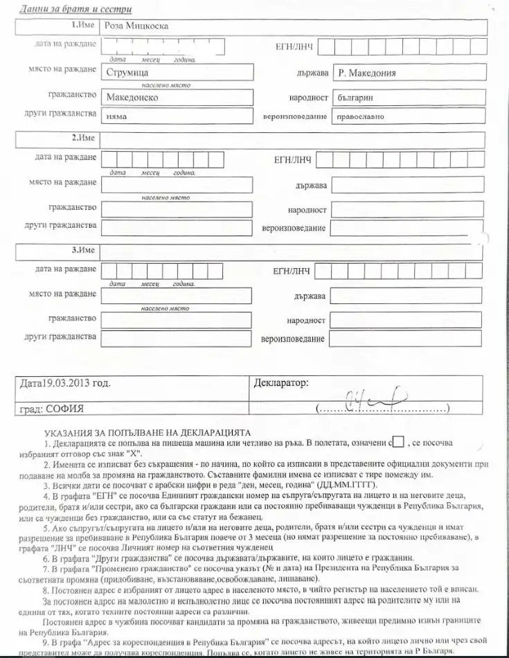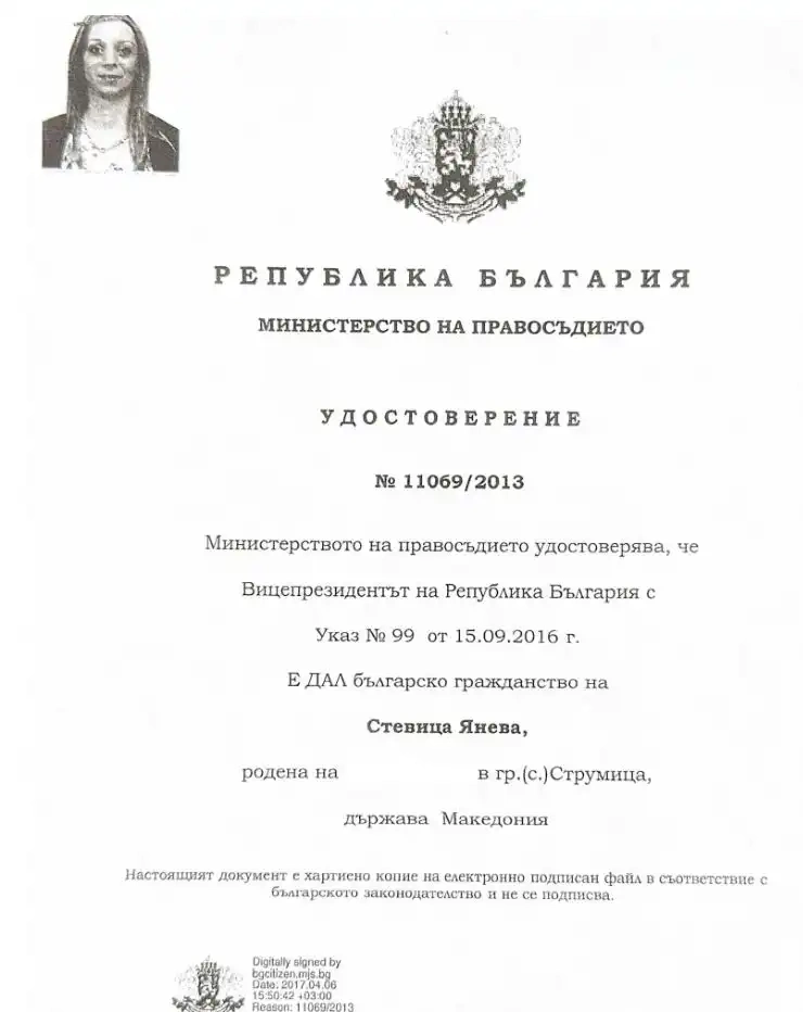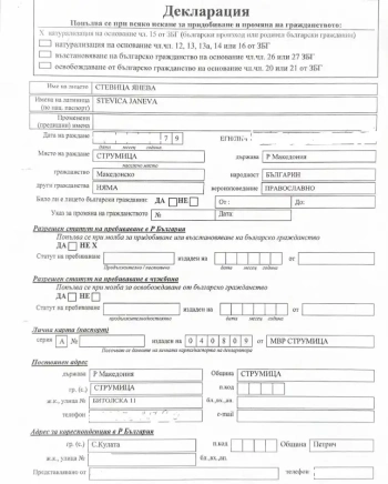 Нещо повече – в декларацията за кандидатстване за гражданство Стевица Янева посочва, че майка ѝ, баща ѝ, двете ѝ деца и сестра ѝ са българи по народност от Струмица. В интервюто, проведено пред българските власти, балдъзата на настоящия македонски премиер разказва, че има роднини в село Брезница, Петрич и София. Съпругът ѝ Йорданчо Янев също е получил български документи през 2016 година.