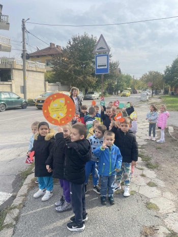 Пътните полицаи Р. Стойнев и Ал. Занев гостуваха на децата от ДГ "Еделвайс" и нейния филиал в кюстендилския кв. "Спартак". Всички заедно си припомниха правилата за безопасност на движение по пътя.