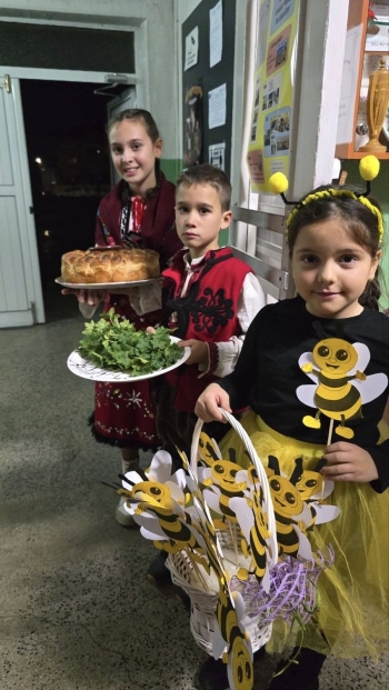 Учениците подариха на гостите мед от своите пчелички и ръчно изработени картини върху дърво