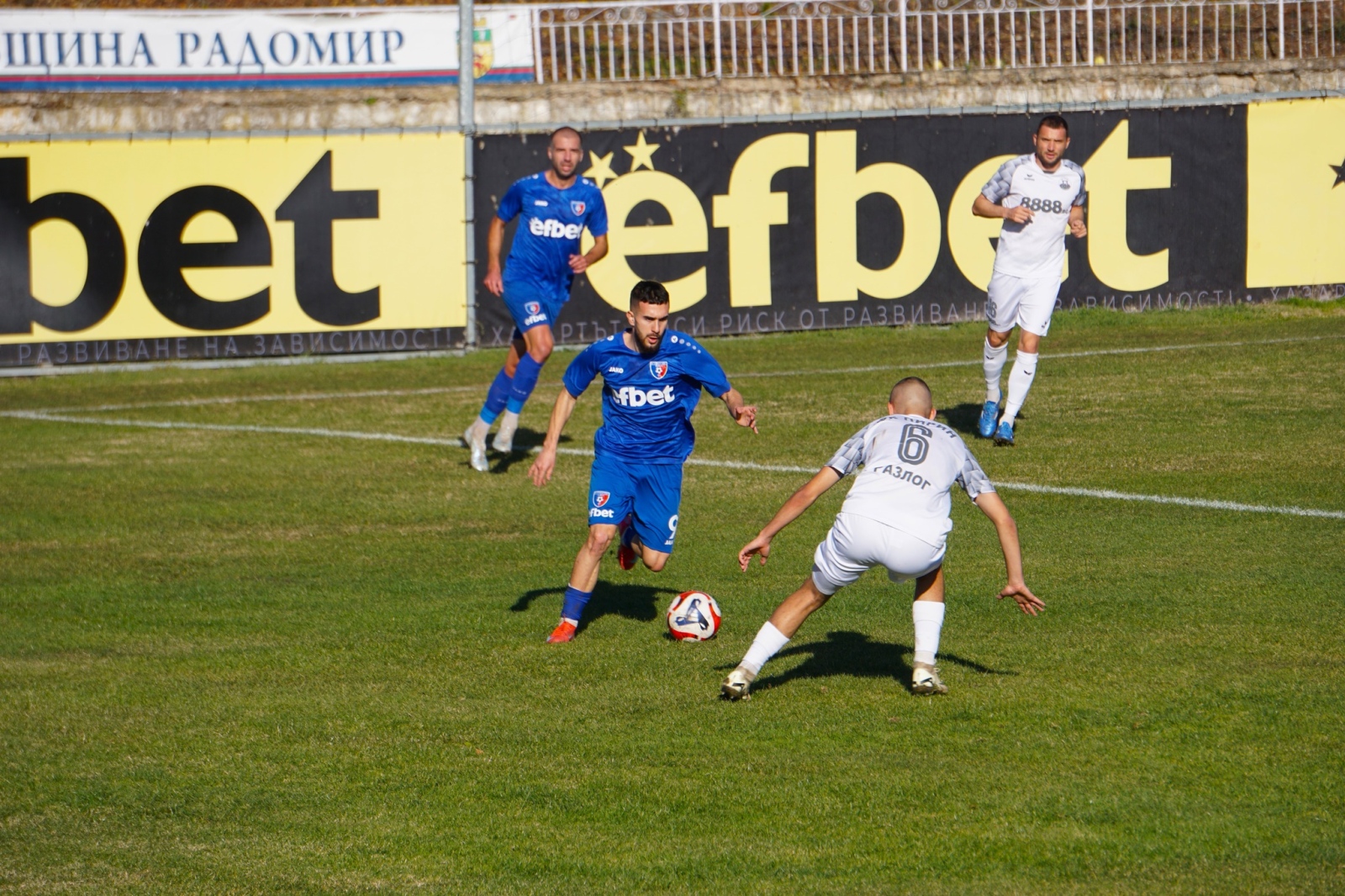 Двата бързи гола за четири минути донесоха успеха на отбора от Радомир в срещата от 17-ия кръг на Югозападната Трета лига. Мачът започна с минута мълчание и тихи аплодисменти в памет на бившия футболист на Струмска Слава от 80-те и началото на 90-те години – Румен Марков, който почина внезапно.