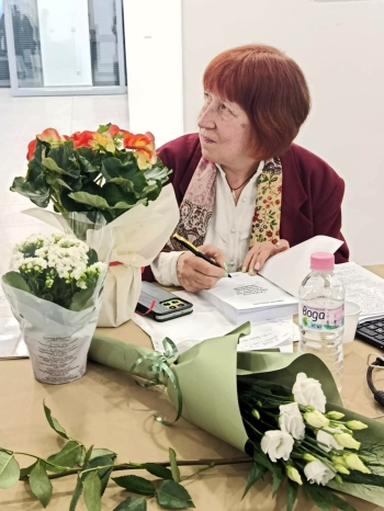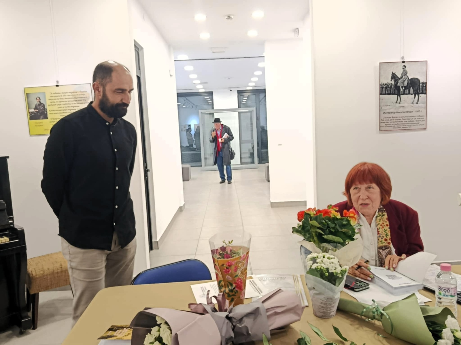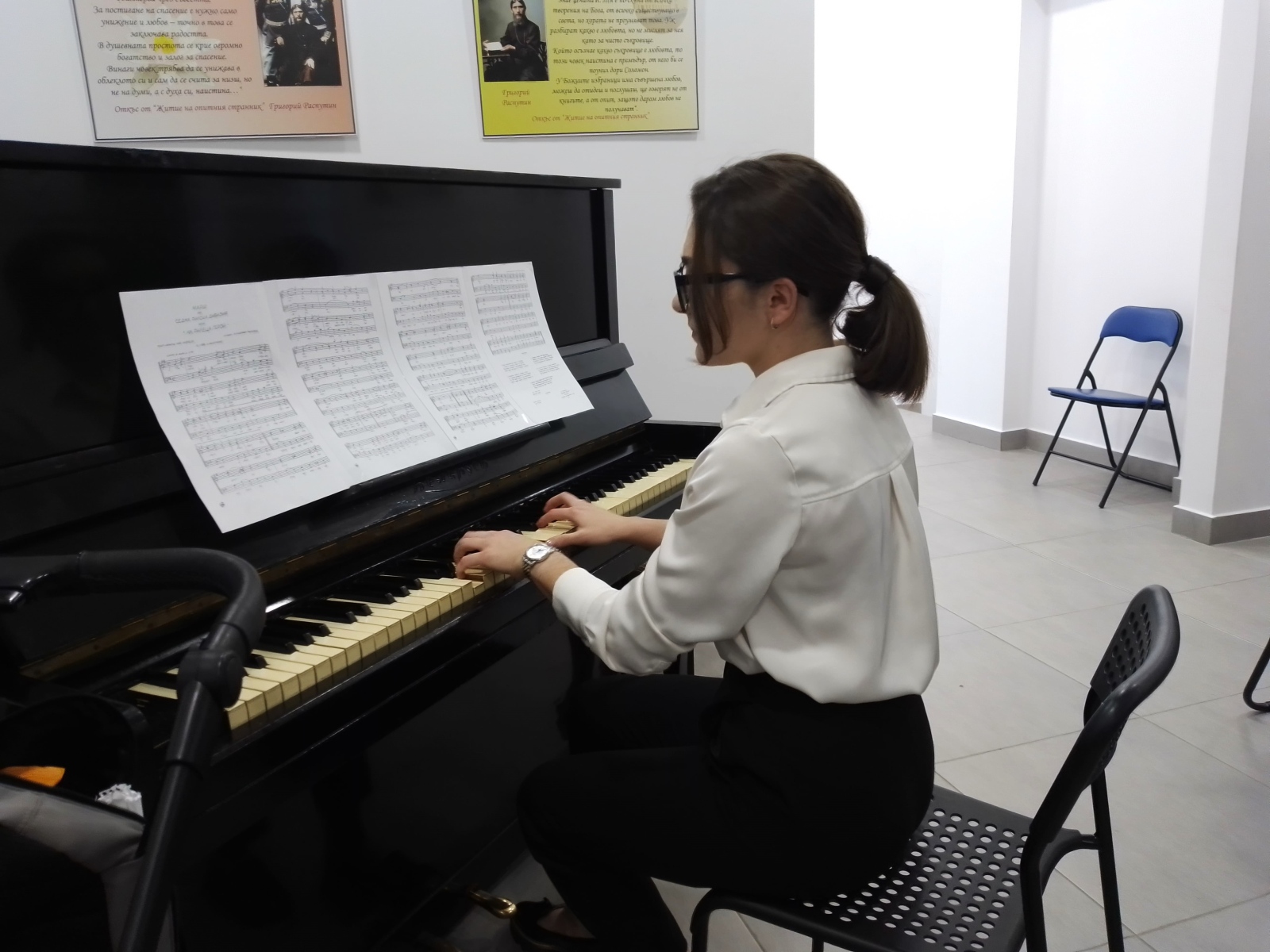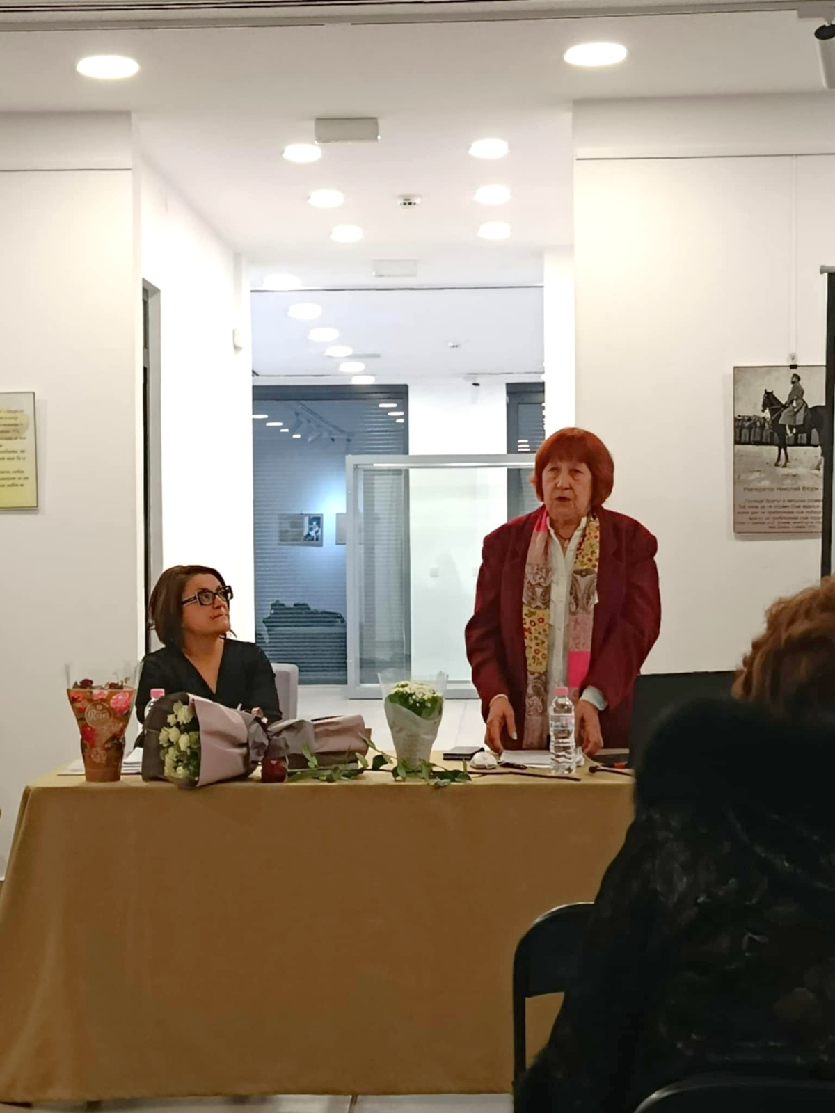 Освен от авторката, книгата бе представена и от гл. библиотекар в библиотеката на читалище “Зора“ Наталия Павлова. Срещата в новата Общинска художествена галерия започна с изпълнение на марша “Булаир“ на пианистката Мирай Бакир.