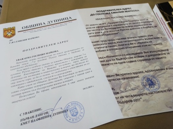 Събитието уважи зам.-кметът на общината Валентина Караганова, която връчи на авторката поздравителен адрес от името на кмета Първан Дангов. Поздравителен адрес имаше и от настоятелството на читалище “Ген. Георги Тодоров“.