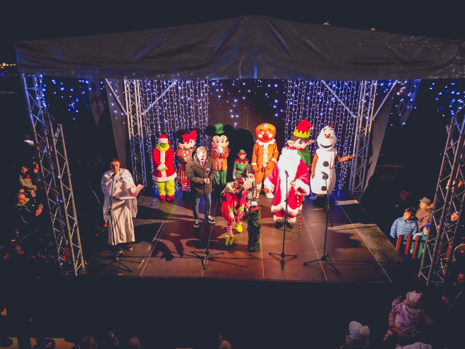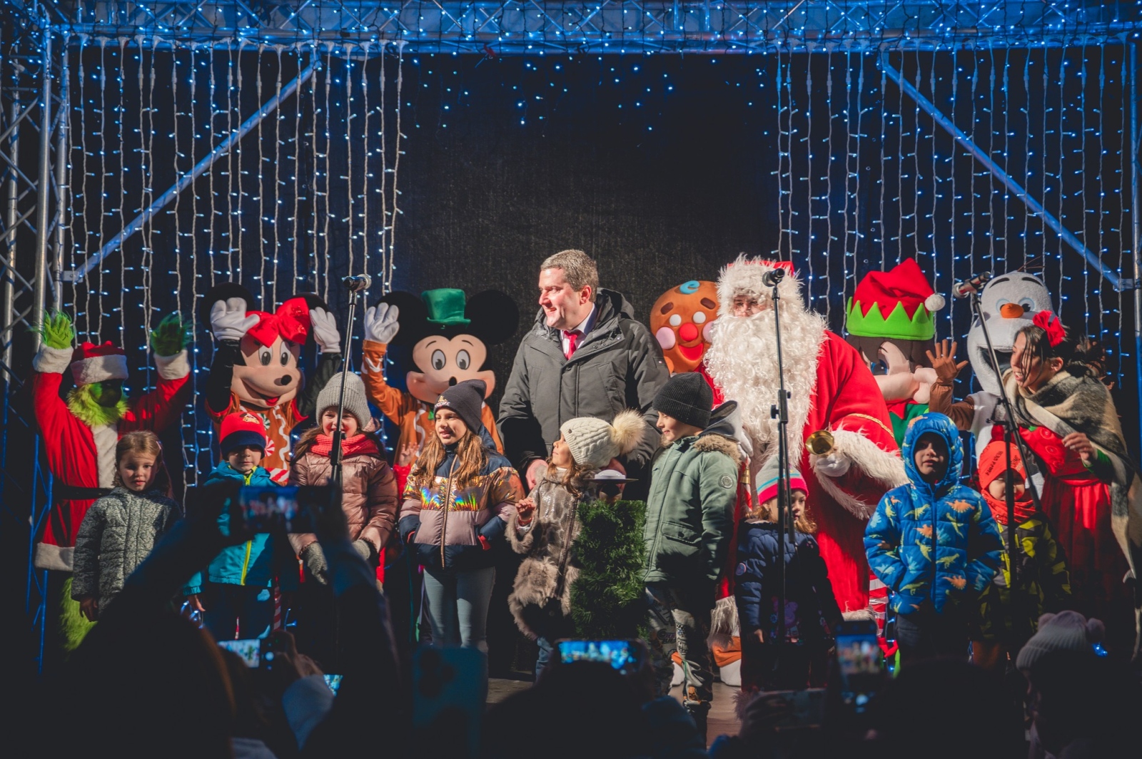 За най-малките бяха подготвени специални изненади – срещи с любими приказни герои като Мики и Мини Маус, елфи, както и Гринч, който този път се включи в забавленията. Специален гост беше и Дядо Коледа. В празничната вечер деца от вокална група “Беронче“ при СУРИЧЕ “Д-р Петър Берон“ и духовият оркестър с диригент д-р Трифон Трифонов поздравиха присъстващите със свои изпълнения.