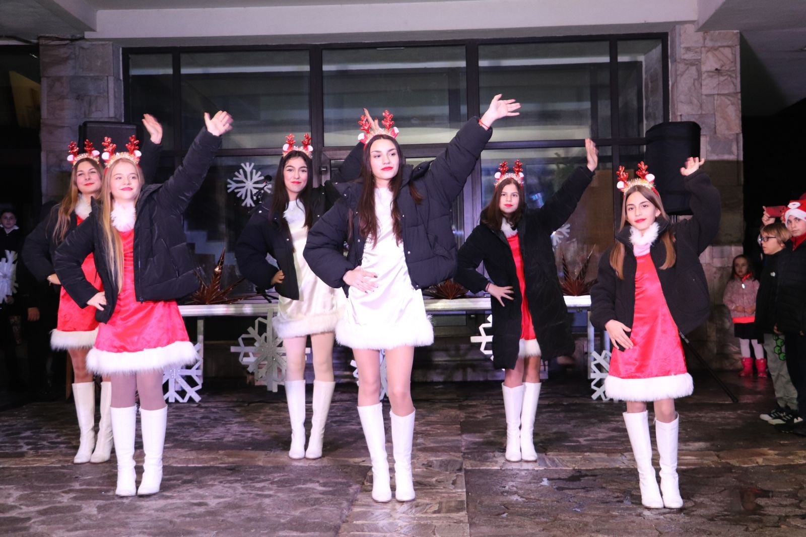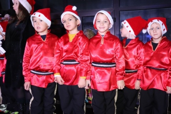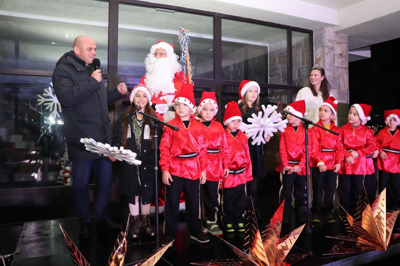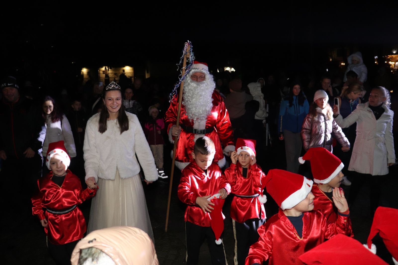 Дядо Коледа, придружаван от Снежанка и джуджетата, се появи с противопожарен автомобил. Деца представиха песни, танци и коледни стихчета, с които озариха атмосферата на курортния град. Белобрадият старец ги зарадва с лакомства и награди за положените усилия.