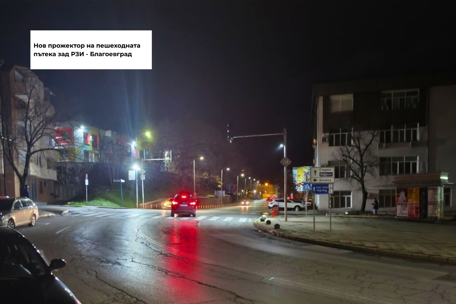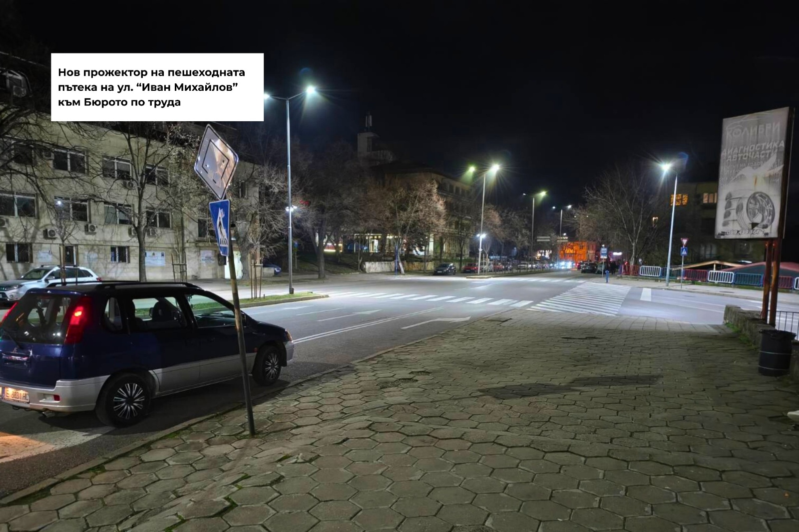 Изпълняваме взетите решения от извънредното заседание на Комисията по безопасност на движението, след поредицата инциденти с пешеходци в Благоевград:Монтираме прожектори и допълнителни осветители за по-добра видимост на ключови пешеходни пътеки.