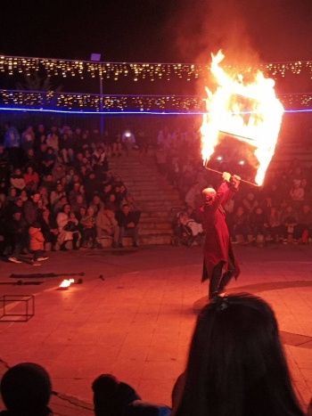 Програмата започна с изпълнения на децата от ДГ “Света Анна“ и учениците от СУ “Христо Ботев“. Те изпълниха коледни песни и сюжети, които внесоха празнично настроение. Присъстващите се насладиха и на впечатляващо огнено шоу.