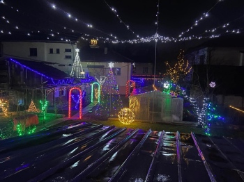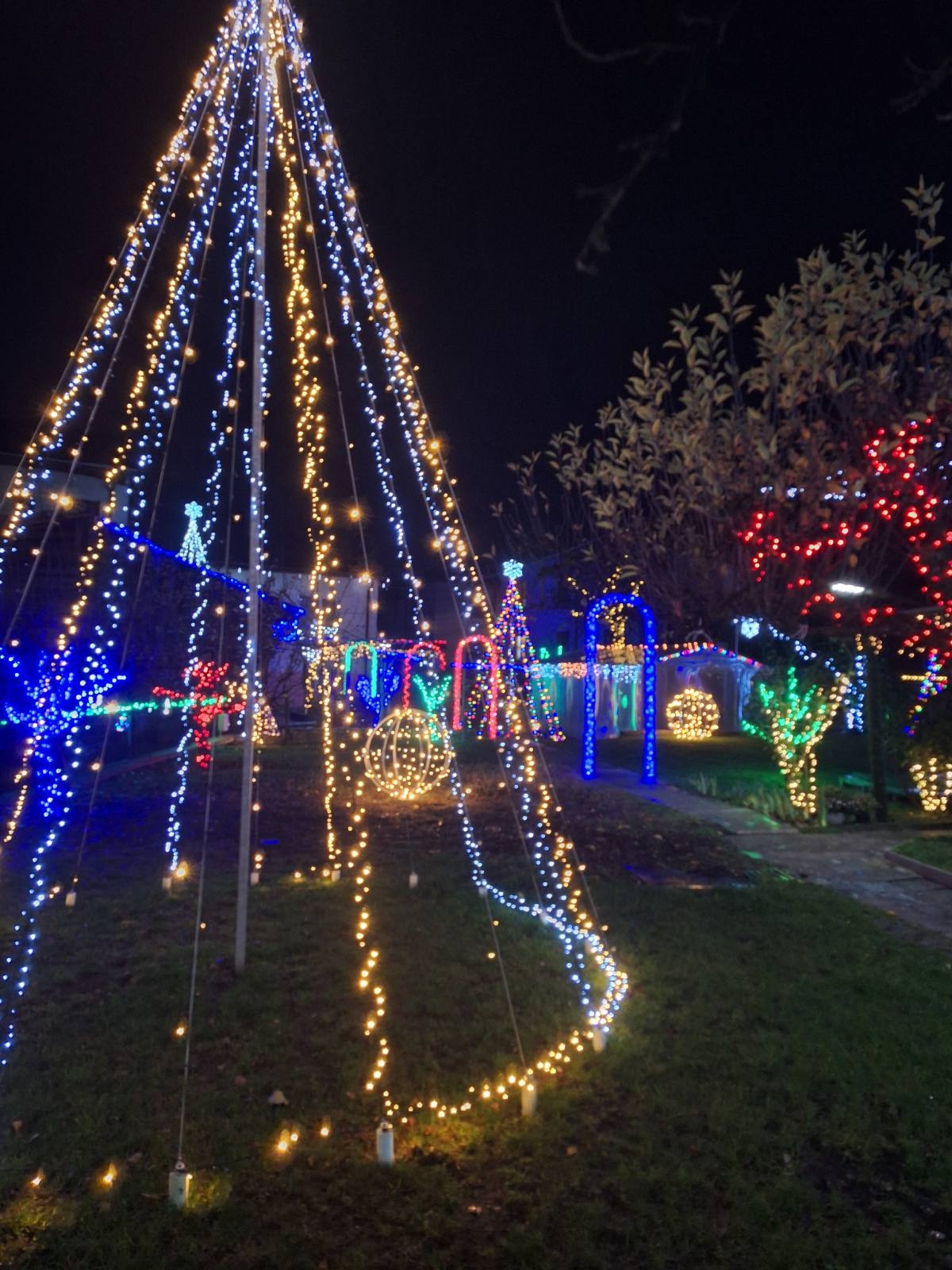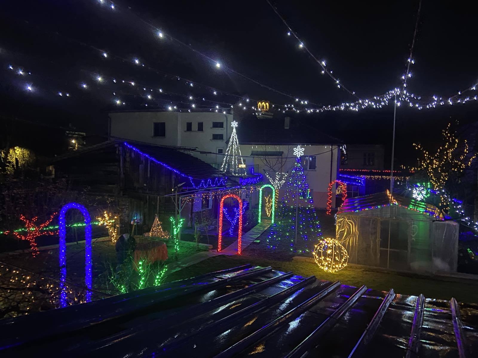 Разширени са и светещите вериги по къщата и постройките в двора, което превръща пространството в истинска светлинна приказка.