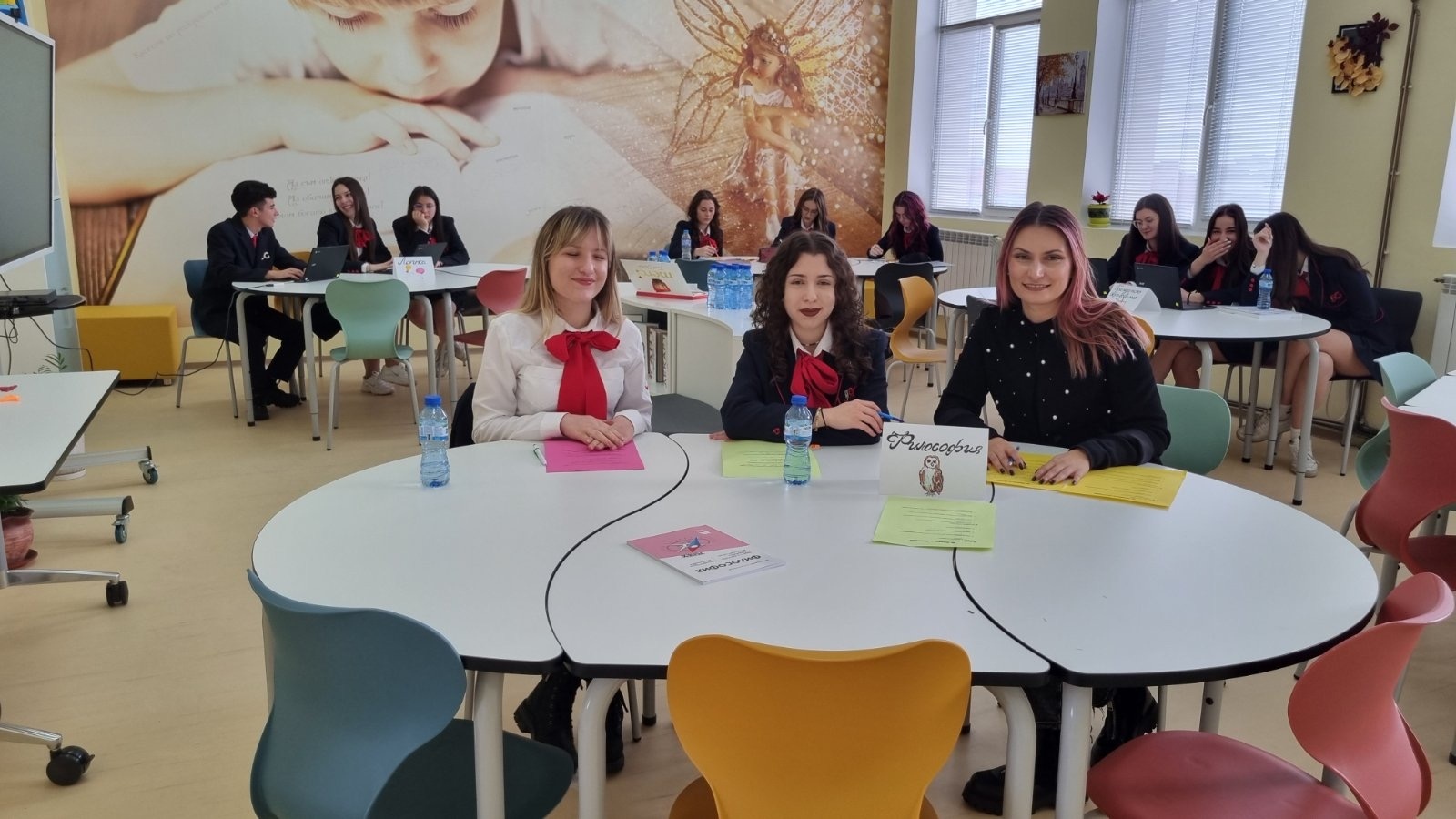 В кабинета по философия учебният процес бе представен чрез интерактивен и съвременен подход. Учениците работиха по постер на активния гражданин, участваха в логически escape room, създадоха мисловна карта за доброто и злото, откриваха проявления на естетиката в природата и попълваха “философски лексикон“, който съчетава лични размисли и основни понятия.