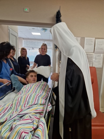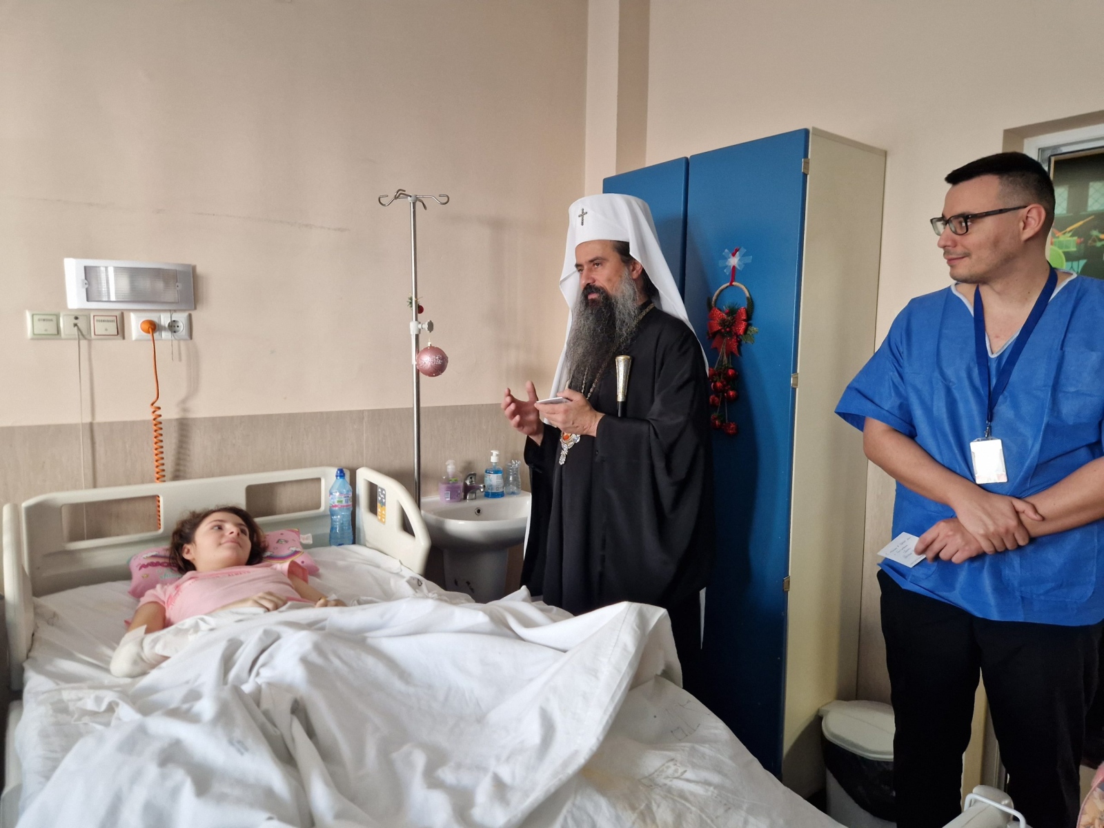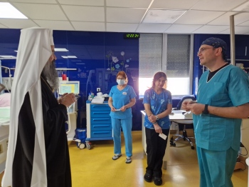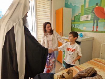 Заедно с г-н Димитър Горанов – началник кабинета на Българския патриарх, и г-н Иван Тупаров от отдел “Духовно-просветен“ към Софийска митрополия, те бяха сърдечно посрещнати от д-р Валентин Димитров, изпълнителен директор на лечебното заведение, след което посетиха детски болнични отделения. Там Негово Светейшество раздаде на малките пациенти празнични торбички с православни книжки, лакомства и други подаръци, осигурени от г-жа Татяна Попова – собственик на верига магазини “Аванти“. Патриарх Даниил благослови и присъстващите лекари, сестри и медицински персонал, като раздаде на всички иконки със сцената на Рождество Христово.