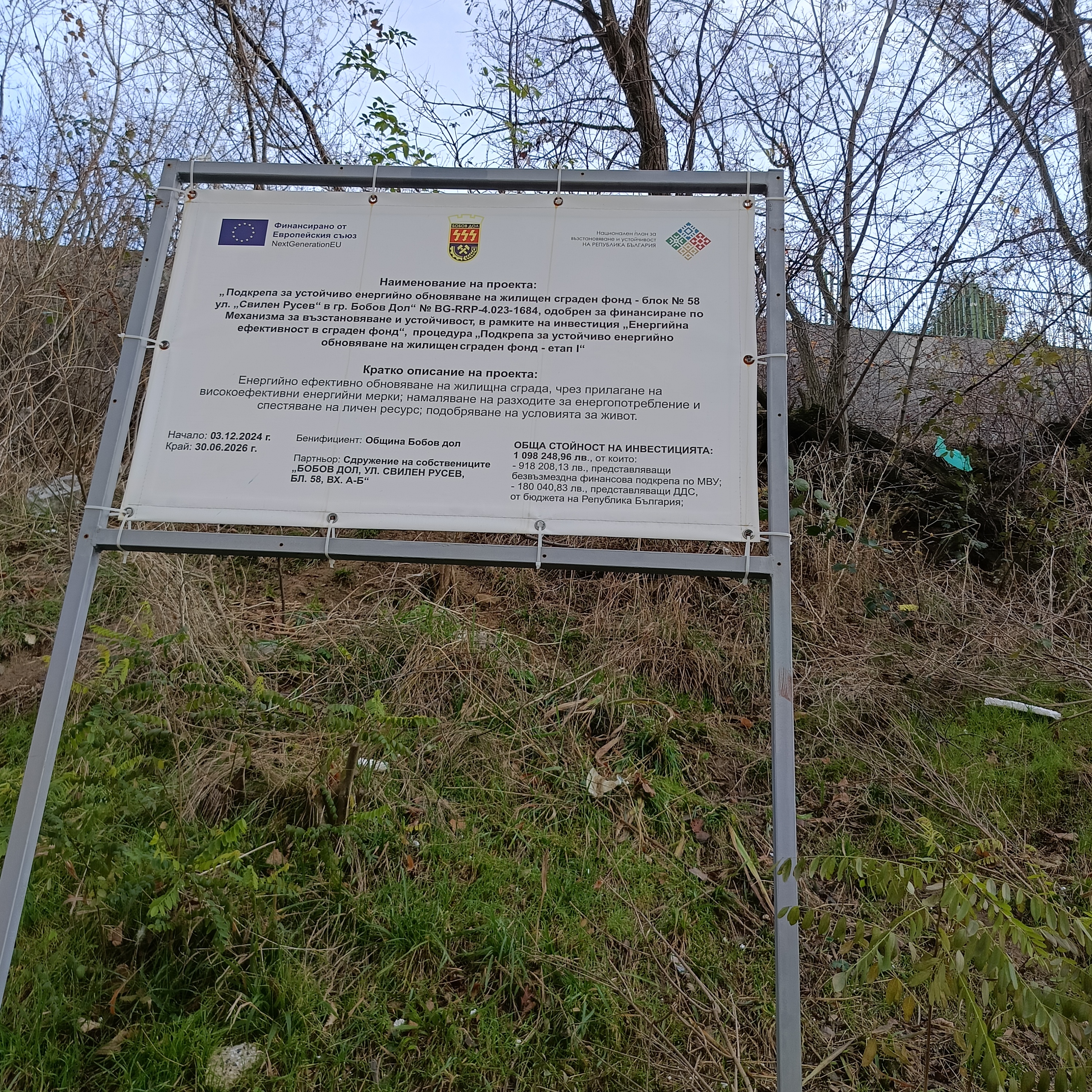 “Строителните дейности на територията на община Бобов дол продължават. Обновяването на централната градска част е към своя край. Сменени са старите плочки и е обновена и благоустроена пешеходната зона, което придава съвсем различен облик на центъра на града. Работи се на блок номер 58 в квартал ,,Свилен Русев‘‘. Построено е високо работно скеле от всички страни на блока. Поставя се изолация на фасадата на блока. По този проект беше проведена откриваща пресконференция на 07.08.2025 година, на която бяха разяснени подробностите по проекта.