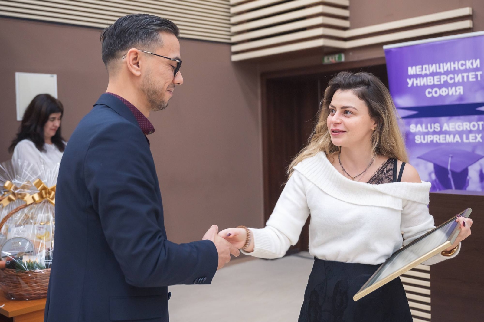 Славчо Петрунов, студент в четвърти курс в специалност “Лекарски асистент“ към Факултета по обществено здраве “Проф. д-р Цекомир Воденичаров, дмн“, бе обявен за “Студент на годината на Факултета по обществено здраве“. Наградата му бе връчена от проф. Александрина Воденичарова, декан на факултета.