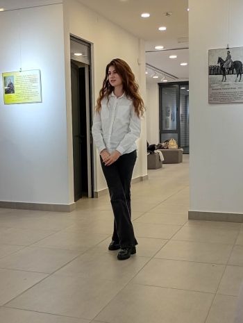 Александра Васева от 12. В клас рецитира стихотворението “Така веднъж във снежната алея“ от Валери Петров – своеобразен разказ в стихове за снежните алеи и за възможните, но неслучили се истории, които остават като тихи сенки в човешката памет.