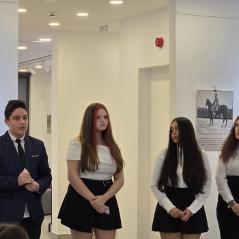 Георги Захаринов от 8. Б клас представи по изключително вълнуващ начин стихотворението “Молитва за България“ от Ивелина Радионова. В неговото изпълнение ясно прозвуча внушението, че националните ценности не са просто феномен от историческото минало, а жив залог за бъдещето на народа и родината ни.