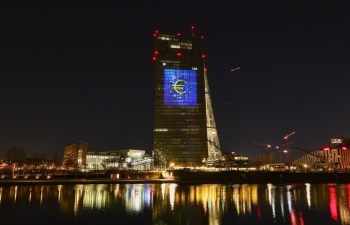 ЕЦБ тества светлинна инсталация по повод присъединяването на България към еврозоната от 1 януари 2026 година.