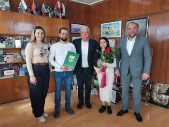 Бебето получи медальон за новороден жител на общината, а родителите – знака на града и парична сума за подпомагане на грижите за новородената им дъщеря.