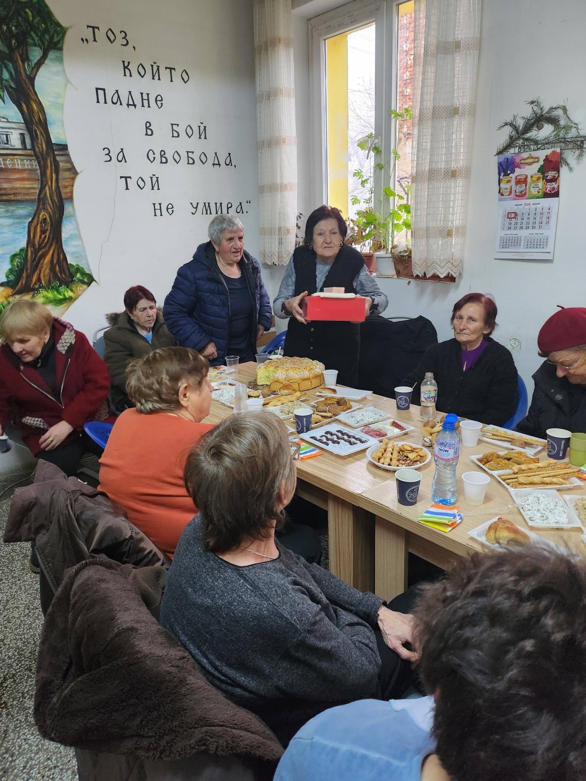 За почерпката се погрижиха Фиданка Христова, Елена Николова, Маргарита Шилегарска, Янка Топалска, Веска Манова… Богата на питки, сладкиши и мезета - трапезата създаде уютна и приятелска атмосфера, а смехът и разговорите на присъстващите изпълниха залата с приповдигнато настроение.