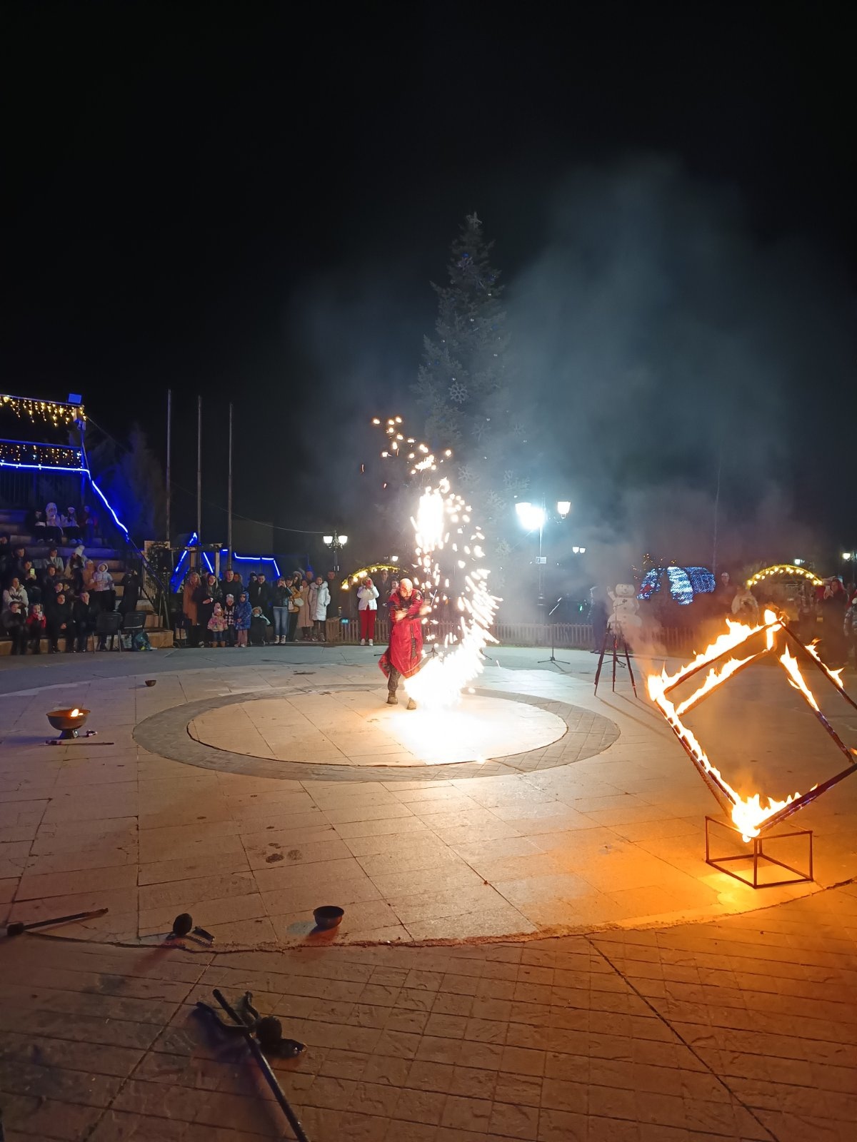 В празничната програма бе включено светлинното огнено шоу, което привлече многобройна публика. Комбинацията от огнени ефекти, светлини и музика, превърна вечерта в красив кулминационен момент на празниците, озаряващ малки и големи.