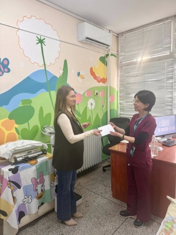 Дарението прие д-р Мая Кирилова, началник на отделението по “Детски болести”, като изказа благодарност за жеста и обеща парите да отидат за нуждите на детското отделение в МБАЛ - Кюстендил.