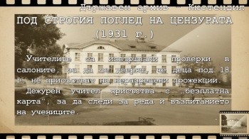 Особено внимание е отделяно и на цензурата. През 30-те години директорът на гимназията “Неофит Рилски“ лично одобрявал всеки филм преди прожекция, а учителите проверявали дали на прожекциите няма деца под 18 години. Дежурни учители следели за реда и дисциплината на всяка прожекция.