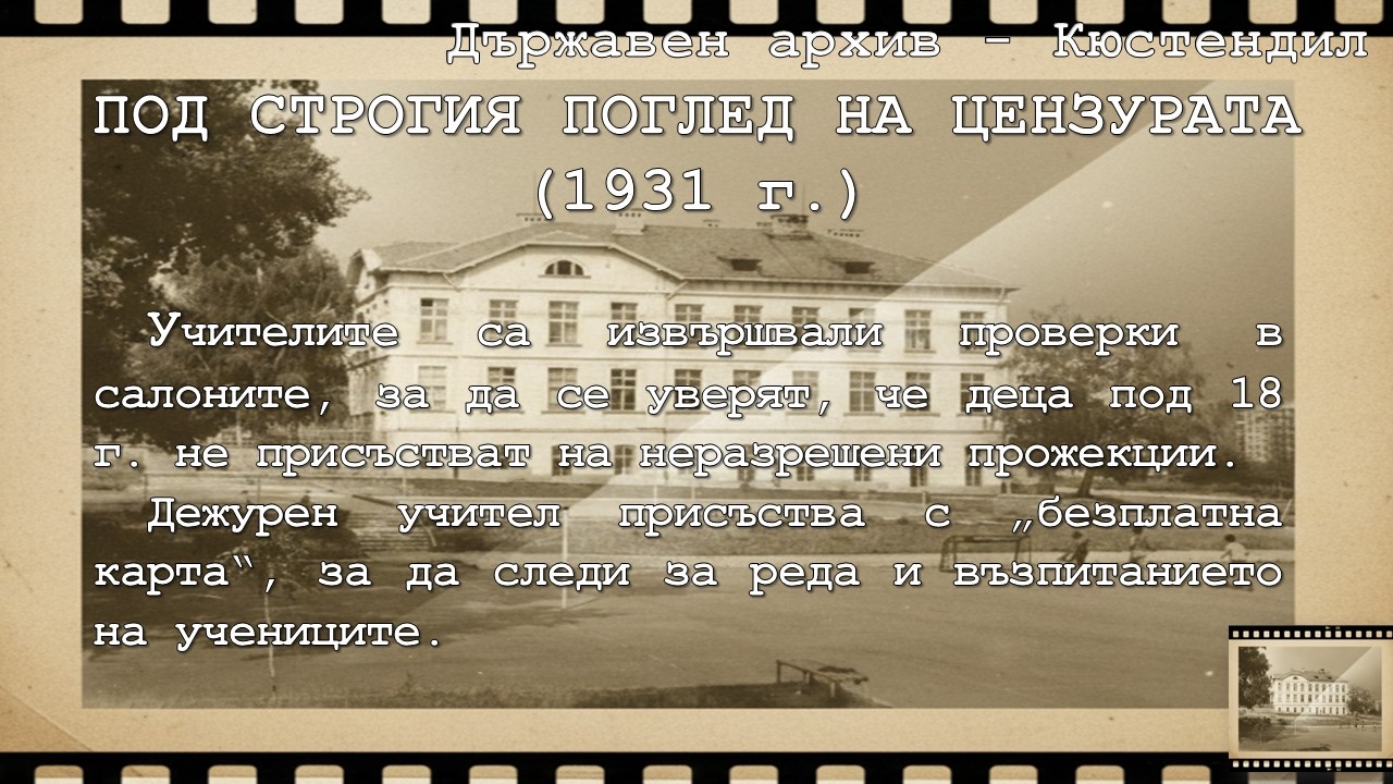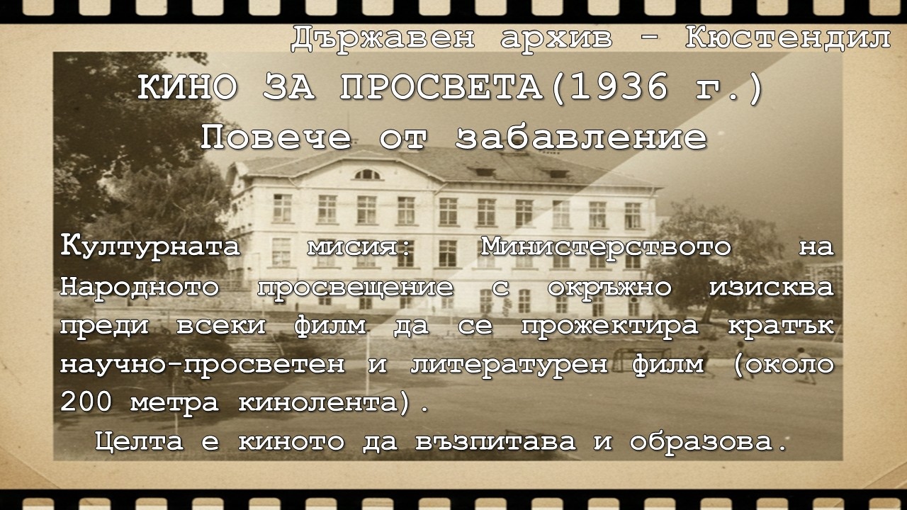 Днес документите, съхранявани в Държавния архив – Кюстендил, пазят спомена за времето, когато филмът е бил най-голямото събитие в града, посочиха от архива.:БТА