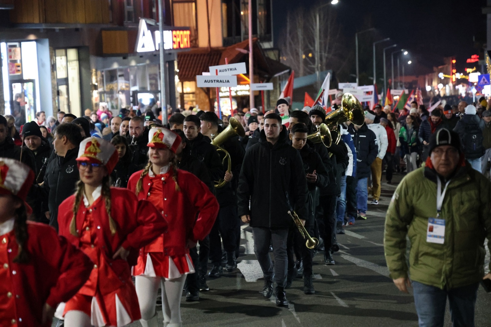 Празничната програма започна с впечатляващо шествие на националните отбори, които ще премерят сили в паралелните гигантски слаломи. Парадът, воден от мажоретен състав ,,Силвана Денс" и духов оркестър, премина по централните улици – от хотел "Four Points by Sheraton“ до "Happy End“, където публиката аплодира състезателите и стана свидетел на тегленето на жребия за първия състезателен ден.