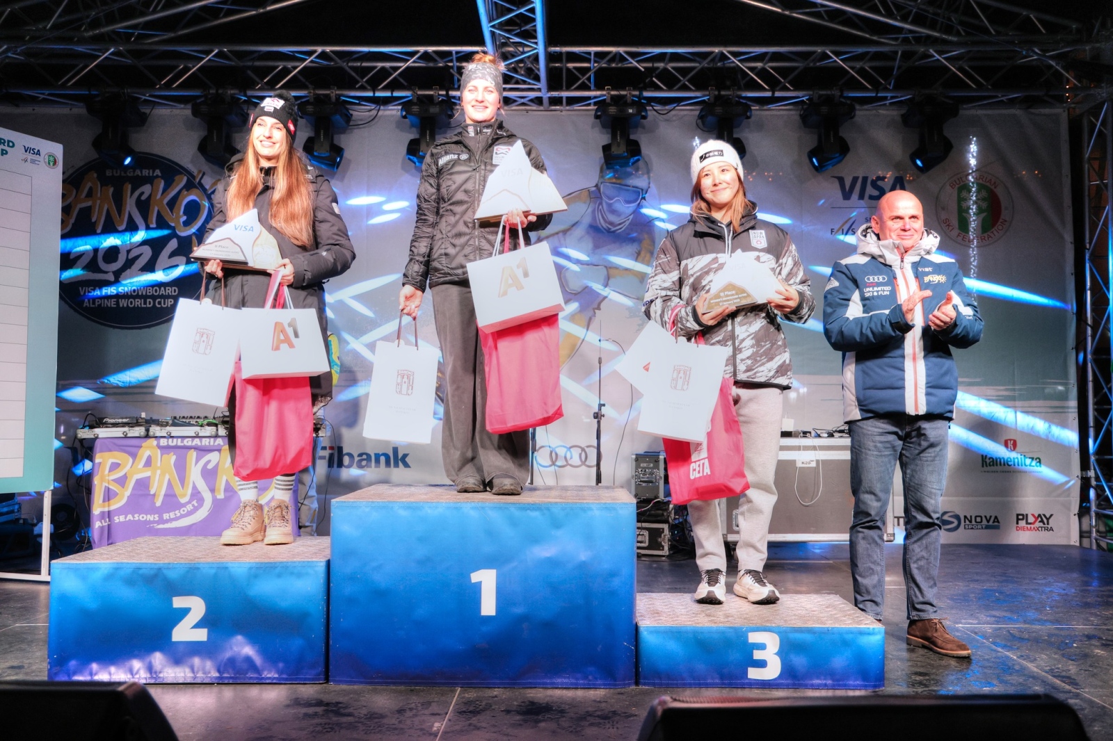 Банско бе и домакин на оспорвана надпревара при жените, където италианката Елиза Кафонт триумфира в паралелния гигантски слалом след силно каране и победа във финала над носителката на Световната купа Цубаки Мики от Япония. Кафонт определи състезанието като изключително трудно, но подчерта, че победата идва в ключов момент – в олимпийски сезон, и ѝ дава увереност преди Игрите в Милано и Кортина д’Ампецо. България имаше повод за гордост и при дамите, след като 16-годишната Малена Замфирова завърши на пето място.