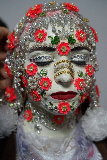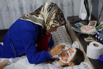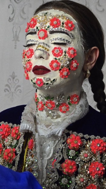 Най-силно въздействащ остава ритуалът “гелина“. Лицето на булката се изрисува и покрива с крем, камъни, цветя и пайети.