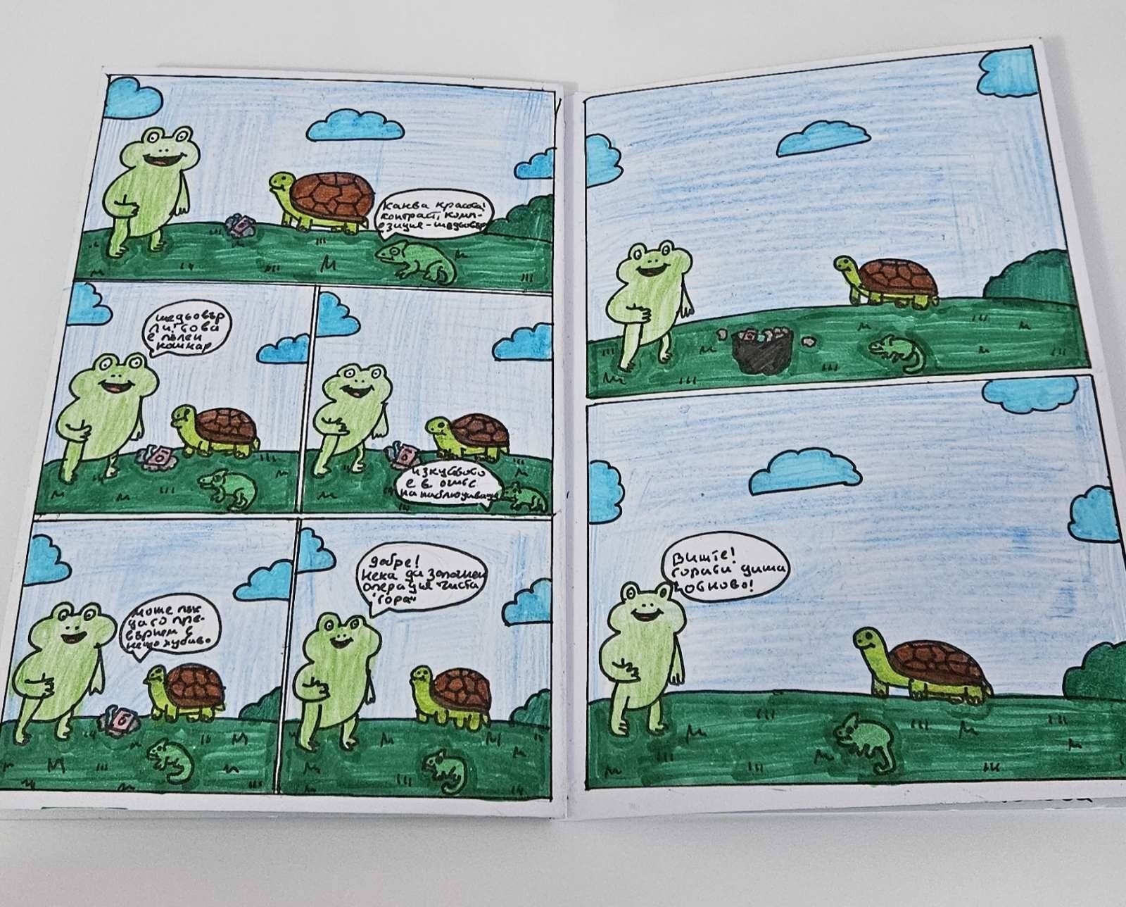 Мишел Славева, ученичка от 9.А клас в СУ “Христо Ботев“ – Сапарева баня, бе отличена с наградата за най-оригинален сюжет в Националния конкурс за образователни комикси по биология “Да спасим живота на планетата“. От общо 136 представени проекта тя впечатли журито с уникалната си идея и творческо изпълнение.