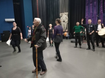 Юбилярят е един от първите танцьори и е сред хората, поставили основите на световноизвестния фолклорен ансамбъл. Навръх своя юбилей той отново стъпи на сцената в зала “Яворов“ в Благоевград и дори се включи в хорото на сцената.