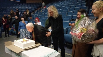 Китан Йорданов се появи пред публиката заедно със своята съпруга Юлия, също танцьорка, с която споделя не само сцената, но и живота вече 70 години. Те са първата двойка, която се среща и свива гнездо в голямото семейство на ансамбъл “Пирин“. Двамата бяха посрещнати с бурни аплодисменти от настоящите артисти, ръководството и публиката, а уважението към тях бе изразено лично от главния художествен ръководител Мирослав Димитров.