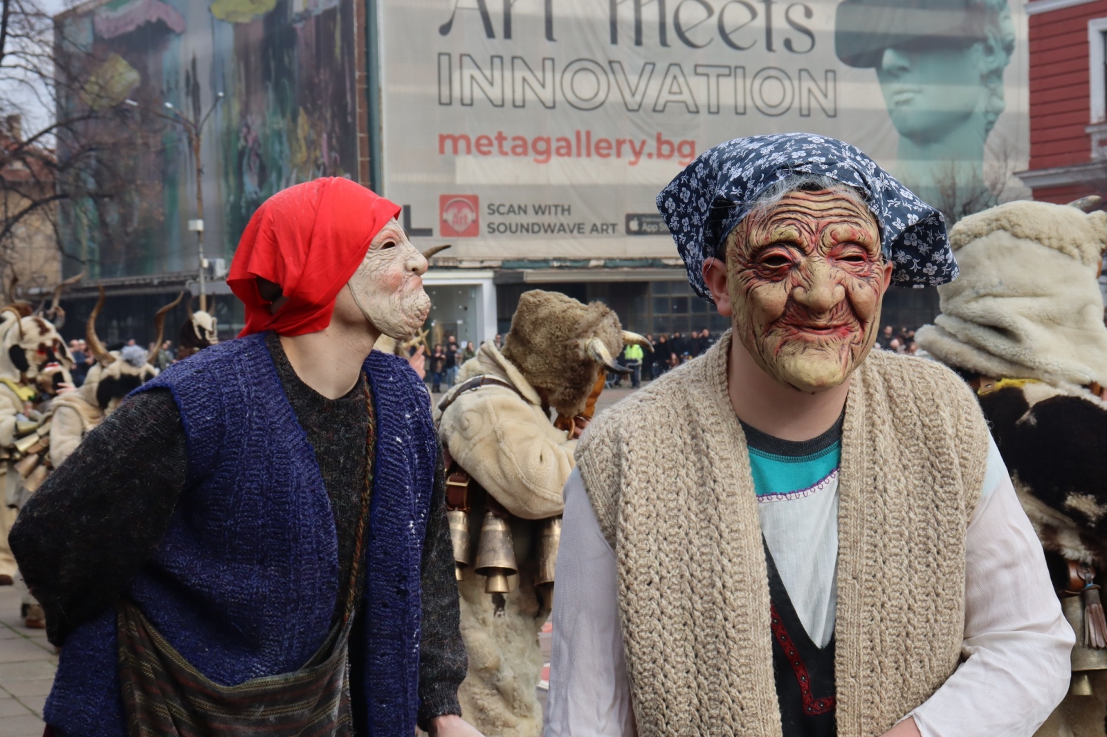 С мощен звън на хлопки, вихър от цветове и хиляди усмивки премина първият ден от фестивала. Центърът на Кюстендил се превърна в сцена на живата българска традиция, а площад “Велбъжд“ затуптя в ритъма на хиляди участници от цялата страна – кукери, сурвакари, джамалари, бабугери, старци и сурати, които показаха богатството на обичаите ни.