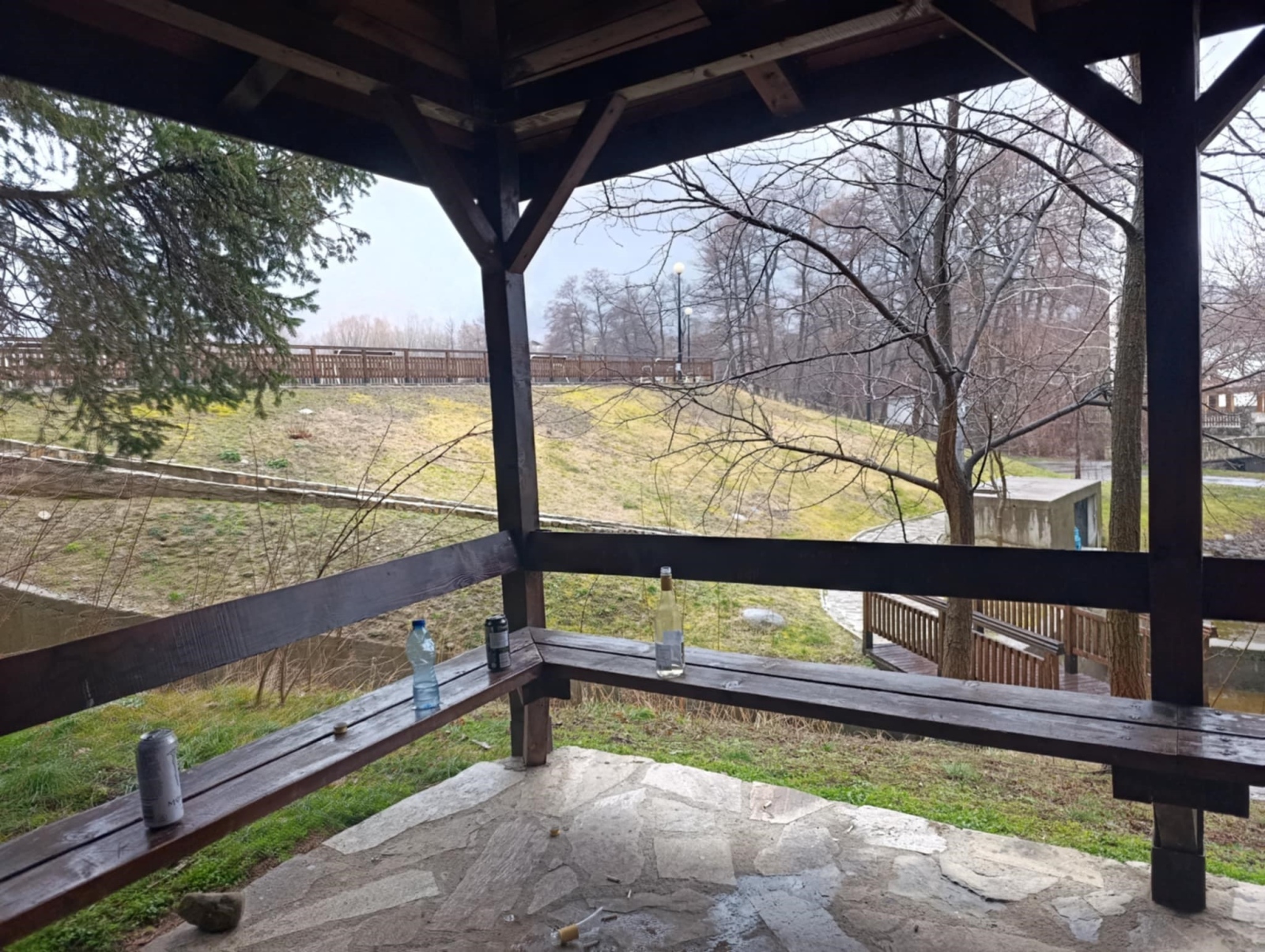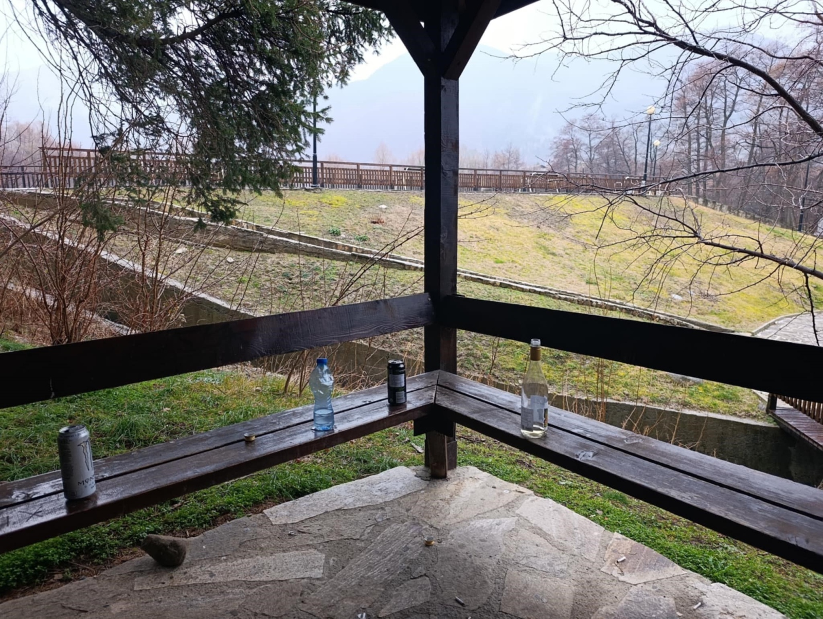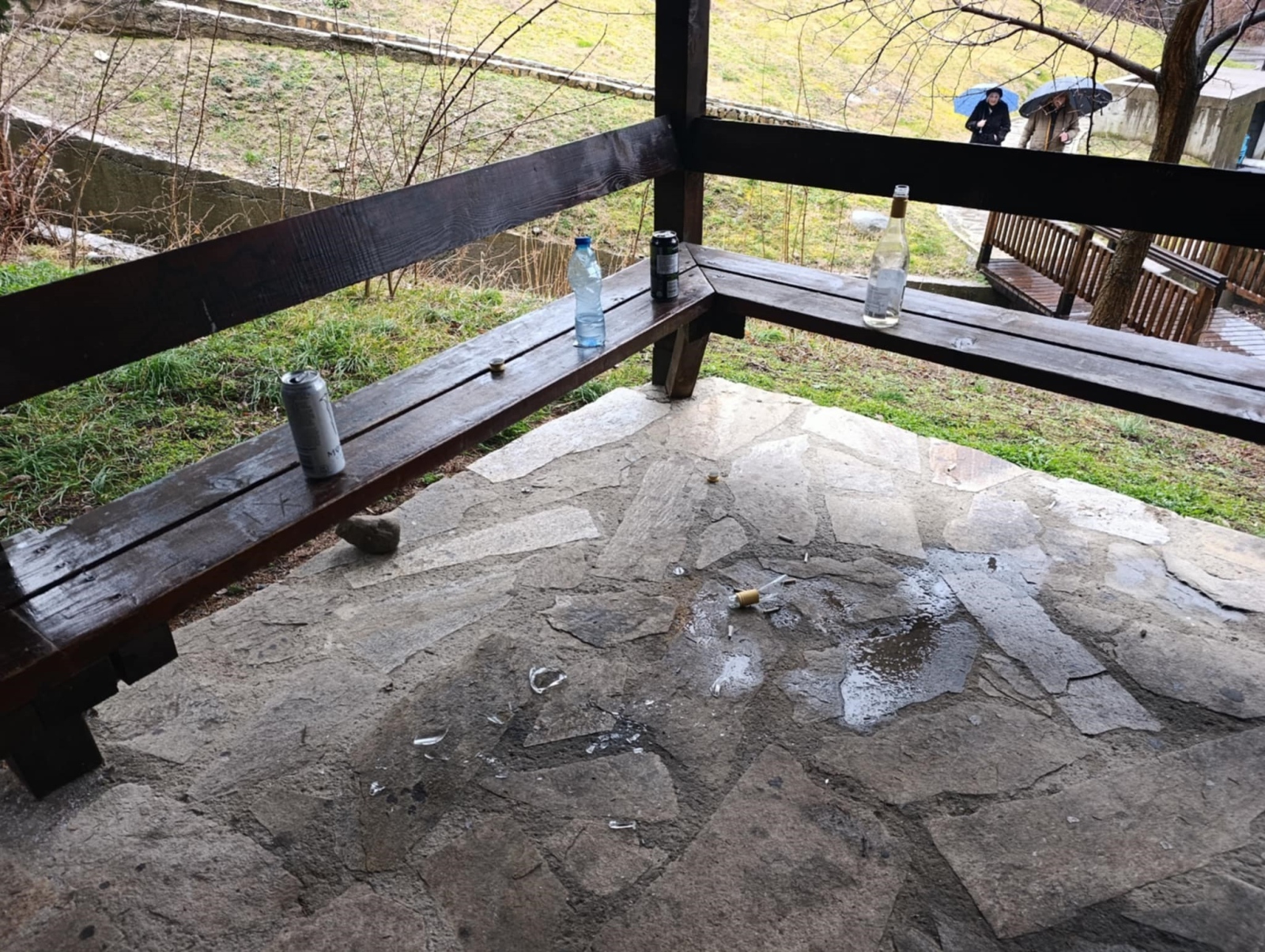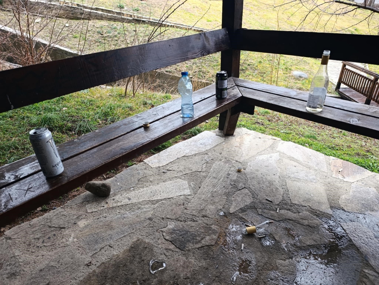 Сутринта на 15 февруари в беседката все още можеха да се видят следи от зловещата случка. Разпръснати стъкла от счупена бутилка с бяло вино, както и видими кървави дири по пода на дървеното съоръжение подсказваха за страховитите събития.