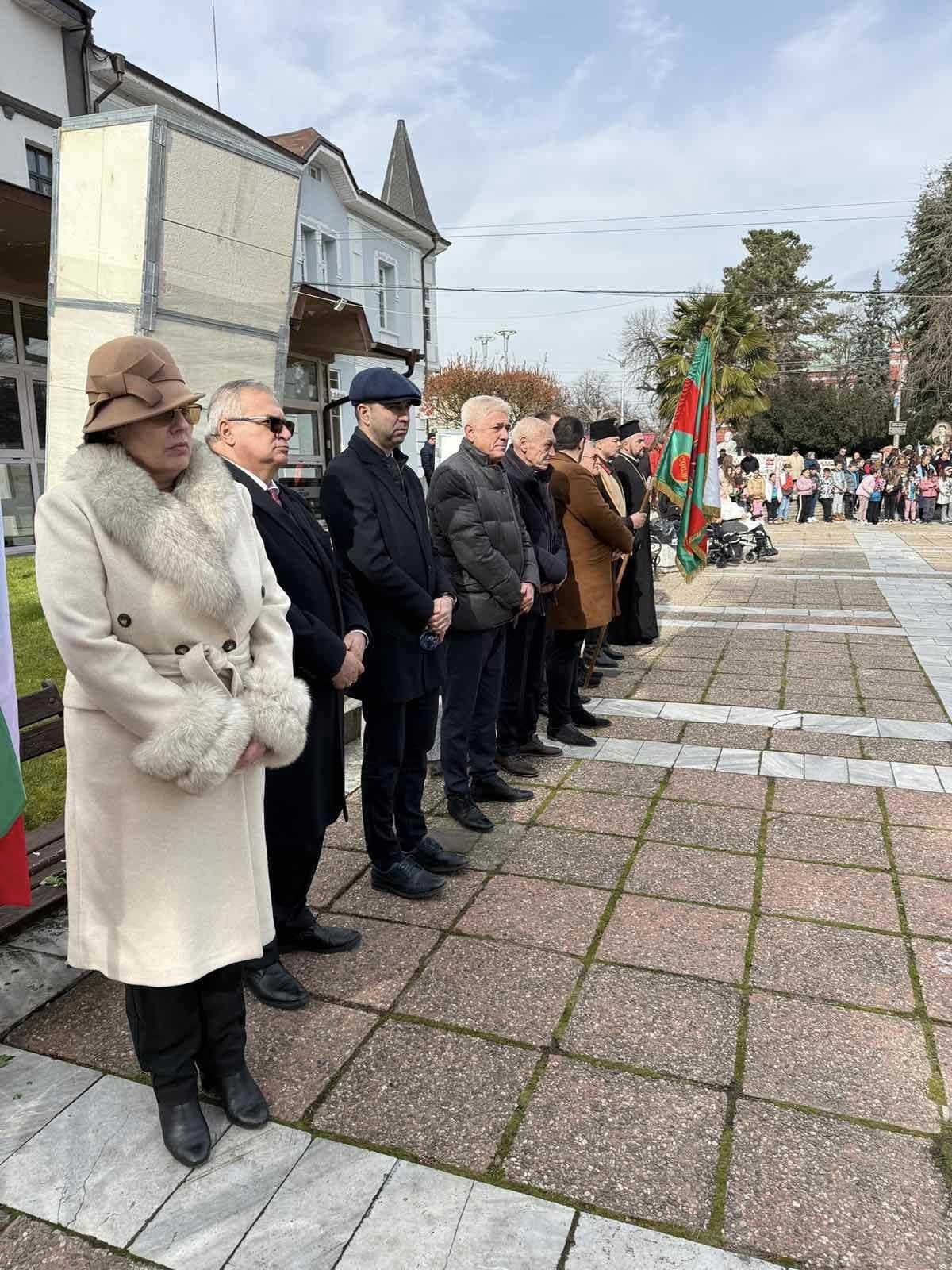 Поднесоха ги кметът на Община Кюстендил инж. Огнян Атанасов, заместник- кметове на Община Кюстендил, областният управител инж. Методи Чимев, представители на Общински съвет, на Архиерейско наместничество, държавни и образователни институции, политически партии, обществени организации и граждани.