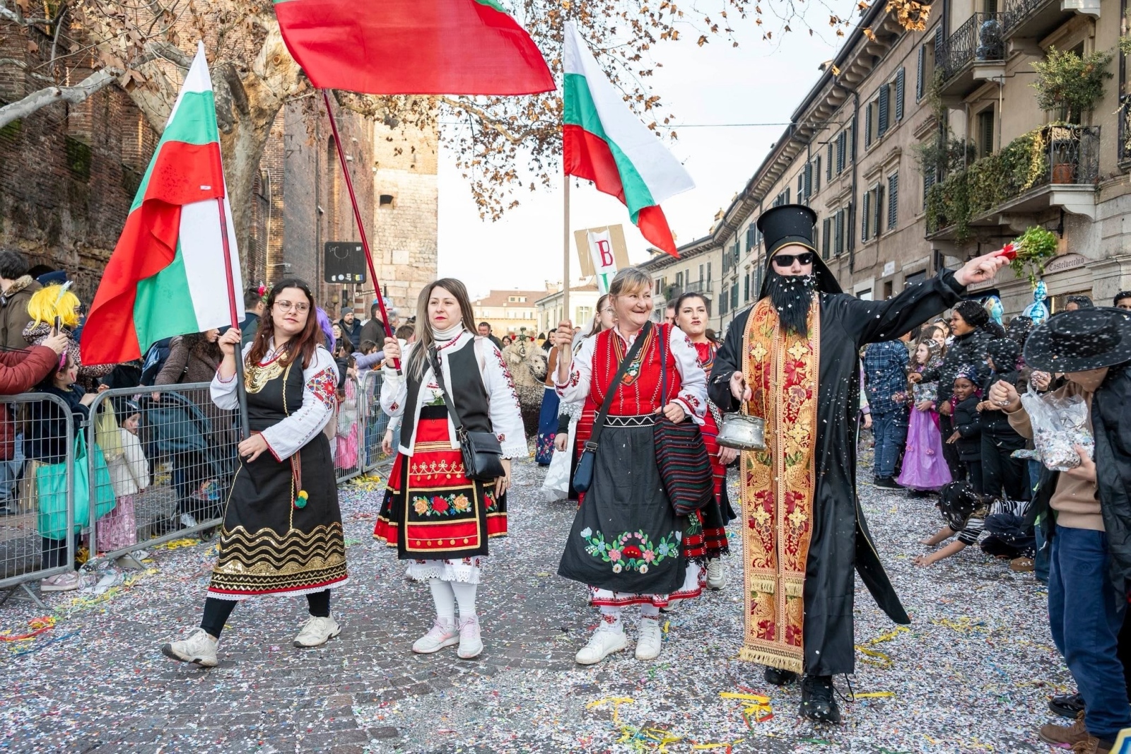 Мечкарка и мечка, четници, момичета със старовремски носии развяха български знамена в града на Ромео и Жулиета
