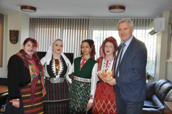 Кметът подари на всеки мартеничка с послание: “Плетеница от бяло и червено… Да са румени, червени, весели, засмени нашите деца! Да бъдат здрави и благословени, да греят като слънца”